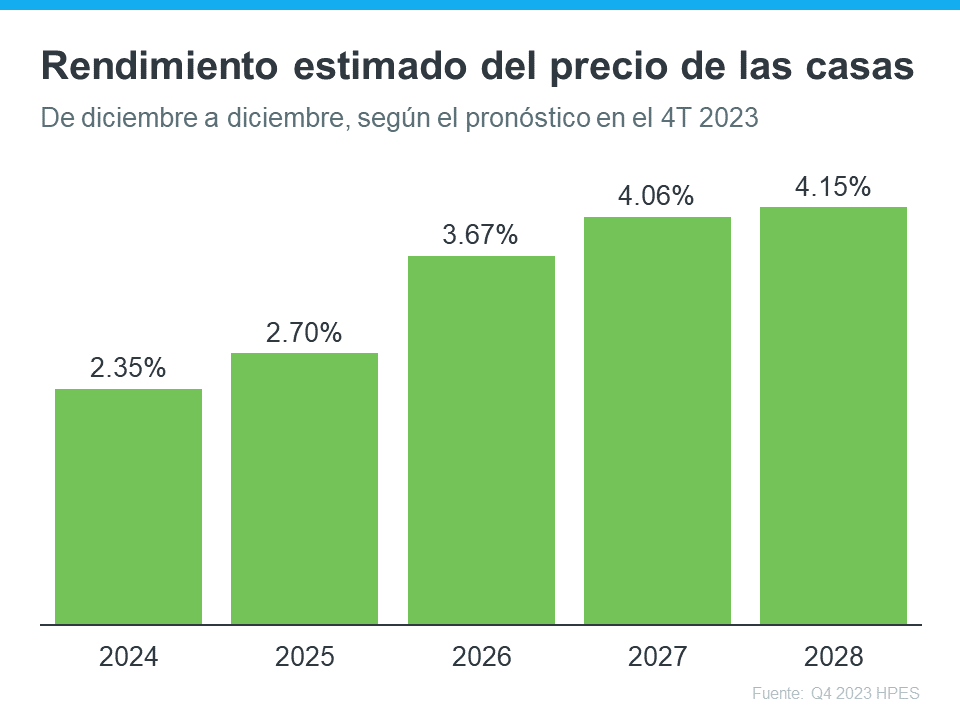 Y el aumento de los precios de las casas, incluso a un ritmo más moderado, es una buena noticia no solo para el mercado, sino también para usted. Significa que, al comprar ahora, es probable que su casa aumente de valor y debería aumentar su plusvalía en los próximos años. Pero, si espera, en base a estas proyecciones, la casa solo le costará más en el futuro.