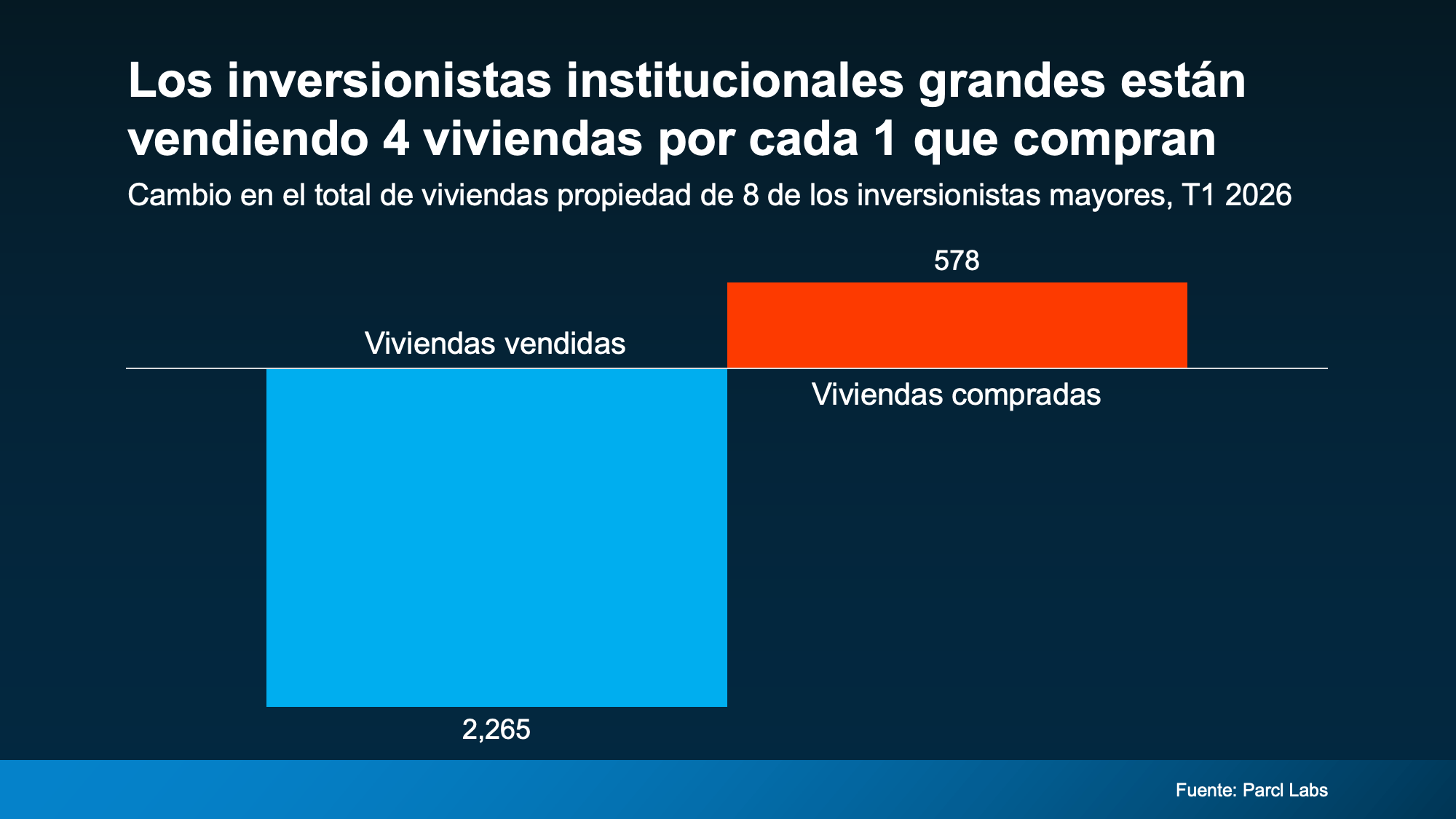 Los datos de Parcl Labs muestran que los inversionistas grandes están vendiendo 4 viviendas por cada 1 que están comprando ahora mismo (ver la imagen abajo):