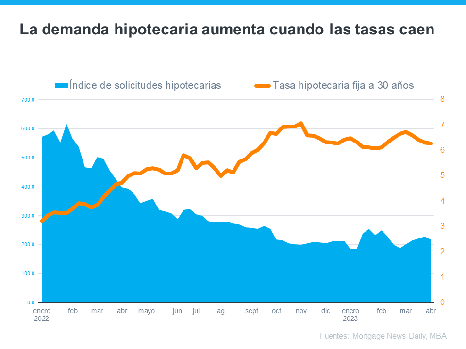 Eso significa que el número de solicitudes de hipotecas muestra cuántos compradores están solicitando hipotecas. Dicho de otra manera, un aumento en las solicitudes de hipotecas significa un aumento en la demanda de los compradores, y como explica Joel Kan, Vicepresidente y Economista Principal Adjunto de la Asociación de Banqueros Hipotecarios (MBA, por sus siglas en inglés), la actividad de solicitudes comenzó a aumentar a medida que las tasas hipotecarias cayeron constantemente en marzo: