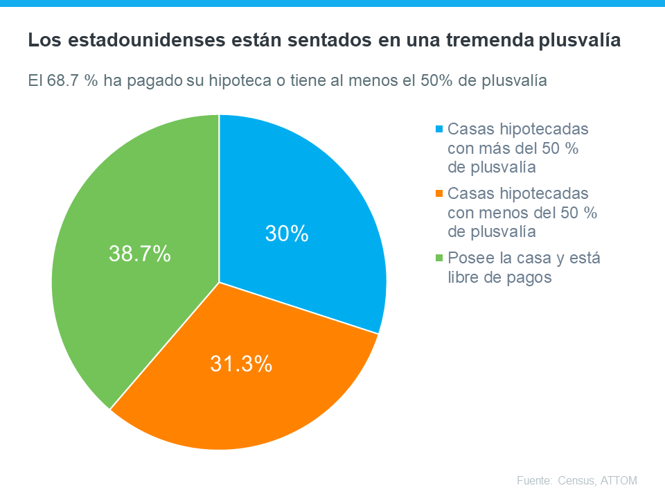 Con los desafíos actuales de la asequibilidad, esa plusvalía puede cambiar las reglas del juego cuando se mude. He aquí por qué. Según los datos de ATTOM y el Censo, casi dos tercios (68.7 %) de los propietarios de casas han pagado sus hipotecas o tienen al menos el 50 % de plusvalía (vea el cuadro a continuación):
