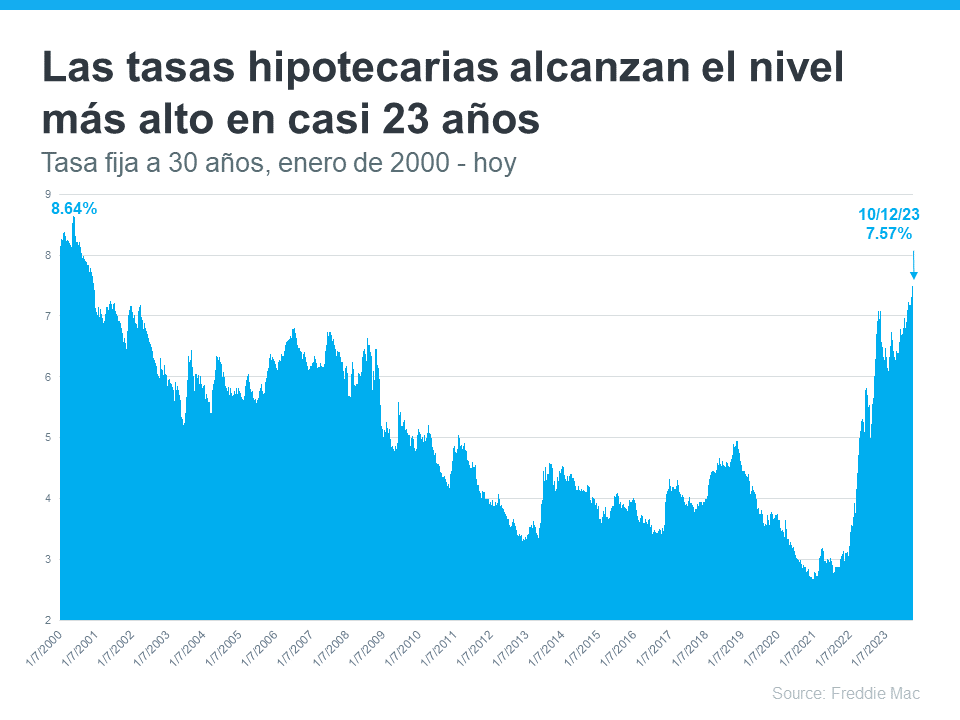 Las tasas hipotecarias han vuelto a subir recientemente y eso está recibiendo mucha atención de la prensa. Si ha estado siguiendo los titulares, es posible que incluso haya visto que las tasas alcanzaron recientemente su nivel más alto en más de dos décadas (vea la gráfica a continuación):