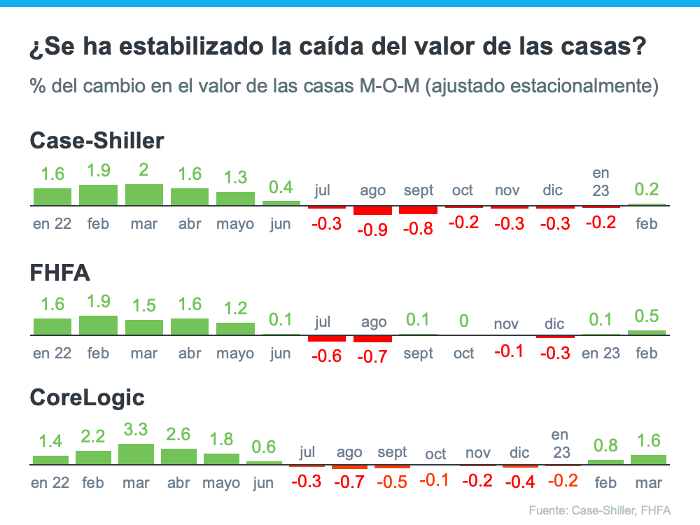 Si bien uno o dos meses no marca una tendencia, el hecho de que los tres informes muestren que los precios se han estabilizado es una señal alentadora para el mercado de la vivienda. Los datos mes a mes transmiten un consenso claro, pero temprano, de que hoy se está produciendo un cambio nacional. Básicamente, los precios de las casas están empezando a subir.