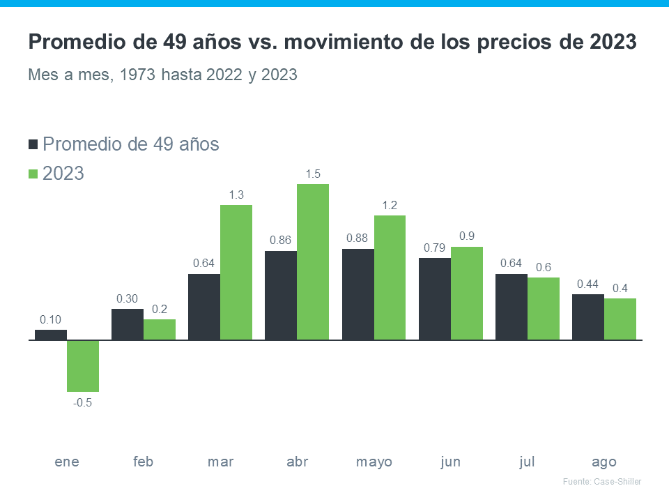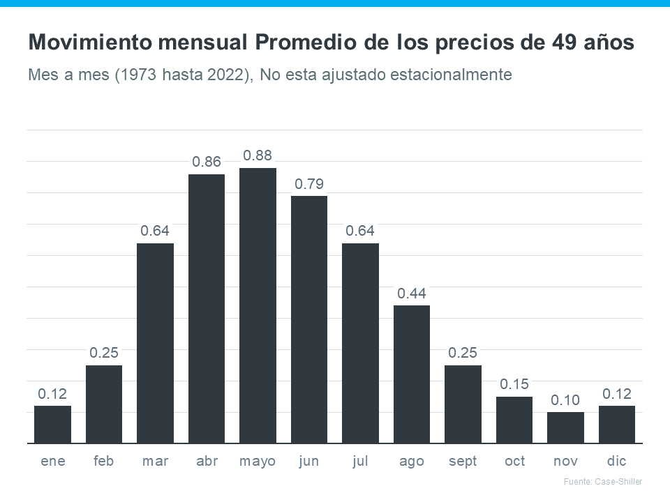 En el mercado de la vivienda, hay altibajos predecibles que ocurren cada año. Se llama estacionalidad. La primavera es la temporada más alta en la compra de casas, cuando el mercado está más activo. Esa actividad suele seguir siendo fuerte en el verano, pero comienza a disminuir a medida que se acercan los meses más fríos.
