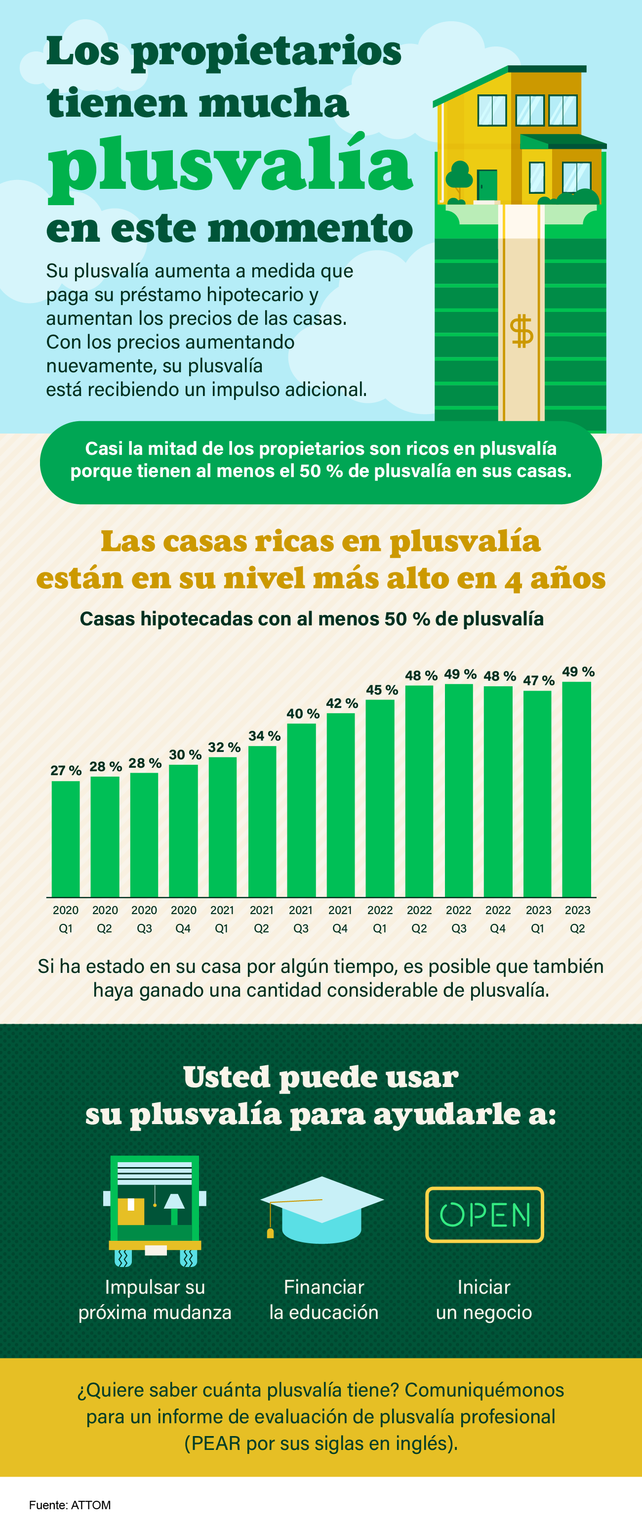 - ¿Quiere saber cuánta plusvalía tiene? Comuníquese con un agente en bienes raíces de confianza para obtener un Informe de Evaluación de Plusvalía Profesional (PEAR, por sus siglas en inglés).