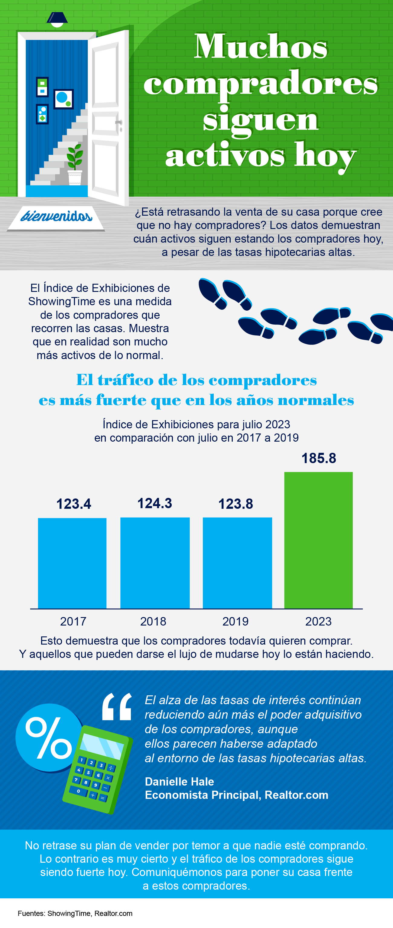 - No retrase su plan de vender por temor a que nadie esté comprando. Lo contrario es muy cierto y el tráfico de los compradores sigue siendo fuerte hoy. Comuníquese con un agente en bienes raíces para poner su casa frente a estos compradores.