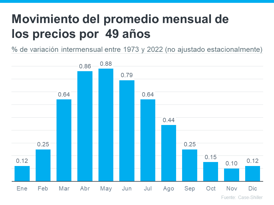 En el mercado de la vivienda, hay altibajos predecibles que tienen lugar cada año. Se llama estacionalidad. Es así. La primavera es la temporada alta de compra de casas, cuando el mercado está más activo. Esa actividad suele ser fuerte en el verano, pero comienza a disminuir hacia finales del año. Los precios de las casas siguen esta estacionalidad porque los precios aumentan más cuando hay mucha demanda.