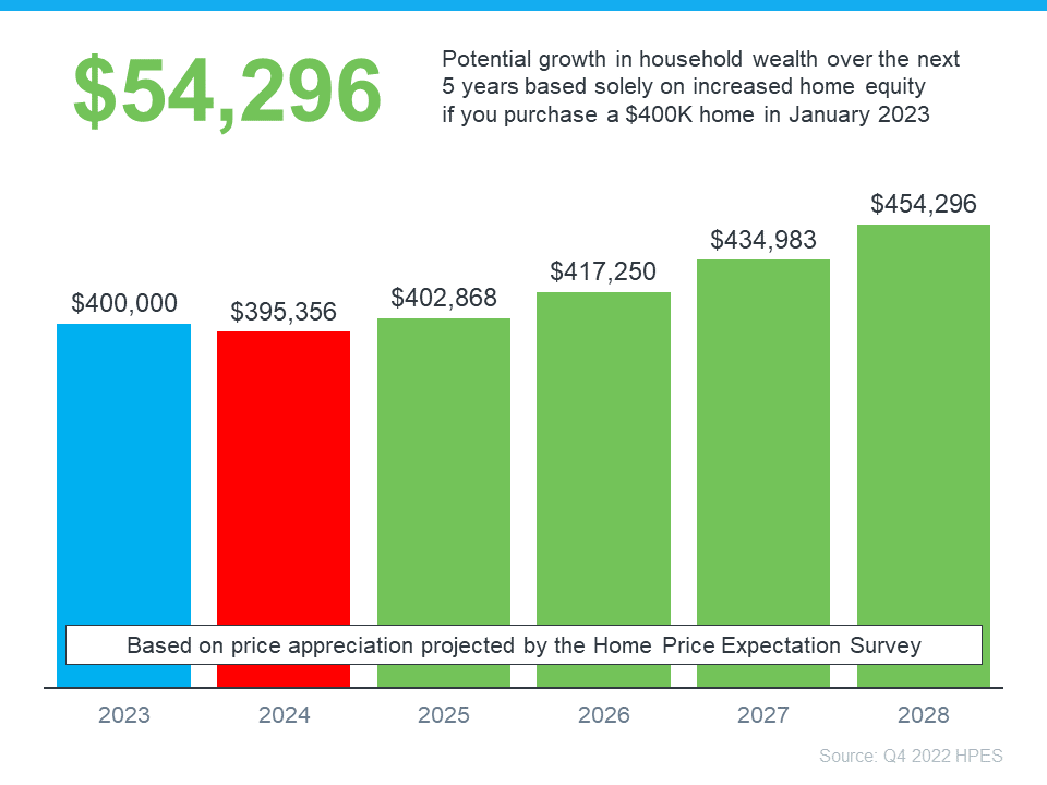 En este ejemplo, si compró una casa de $400,000 a principios de este año y tiene en cuenta las proyecciones de la HPES, podría acumular más de $54,000 en patrimonio del hogar en los próximos cinco años. Por lo tanto, si se pregunta si comprar una casa es una buena decisión, tenga en cuenta lo fuerte que es esta herramienta de creación de riqueza a largo plazo.