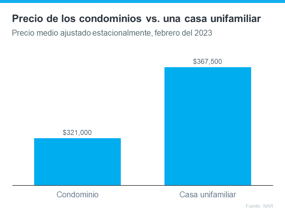 Es por eso que ampliar su búsqueda para incluir tipos de casas adicionales, como condominios, podría ayudarle a lograr sus objetivos de ser propietario esta primavera, especialmente si puede ser flexible sobre el espacio que necesita. Los condominios suelen ser más pequeños que una casa unifamiliar, pero eso es parte de lo que puede hacerlos más económicos (vea la gráfica a continuación):