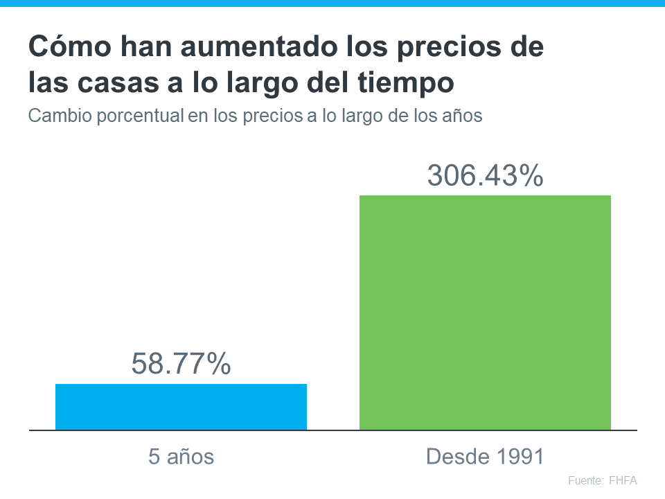 Si bien el aumento de los precios de las casas varía según el estado y el área local, el promedio nacional muestra que el propietario típico que ha estado en su casa durante cinco años vio aumentar su valor en casi un 60 %. Y el propietario promedio que ha sido propietario de su casa desde 1991 vio que su valor se triplicó con creces durante ese tiempo.