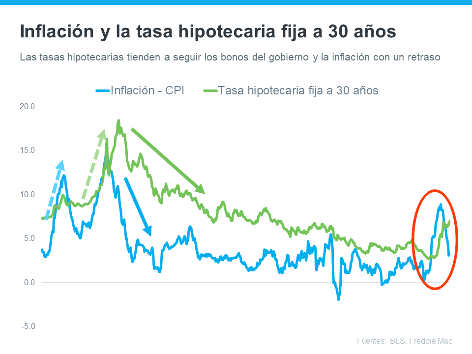 Para entender hacia dónde pueden ir las tasas hipotecarias, es útil mirar dónde han estado en el pasado. Existe una conexión clara entre la inflación y las tasas hipotecarias, y si esa relación histórica es cierta, la reciente disminución de la inflación puede significar buenas noticias para el futuro de las tasas hipotecarias y sus objetivos de ser propietario de una casa.